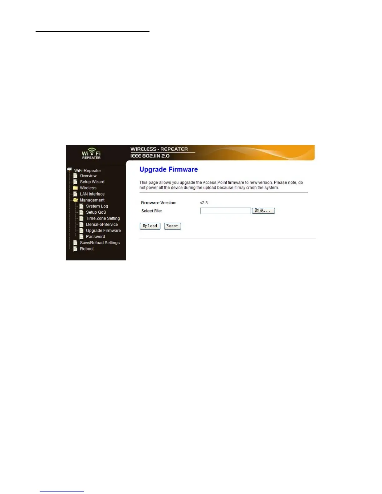 Clicchi su ‘Management-> Upgrade Firmware’ presente nell’interfaccia di