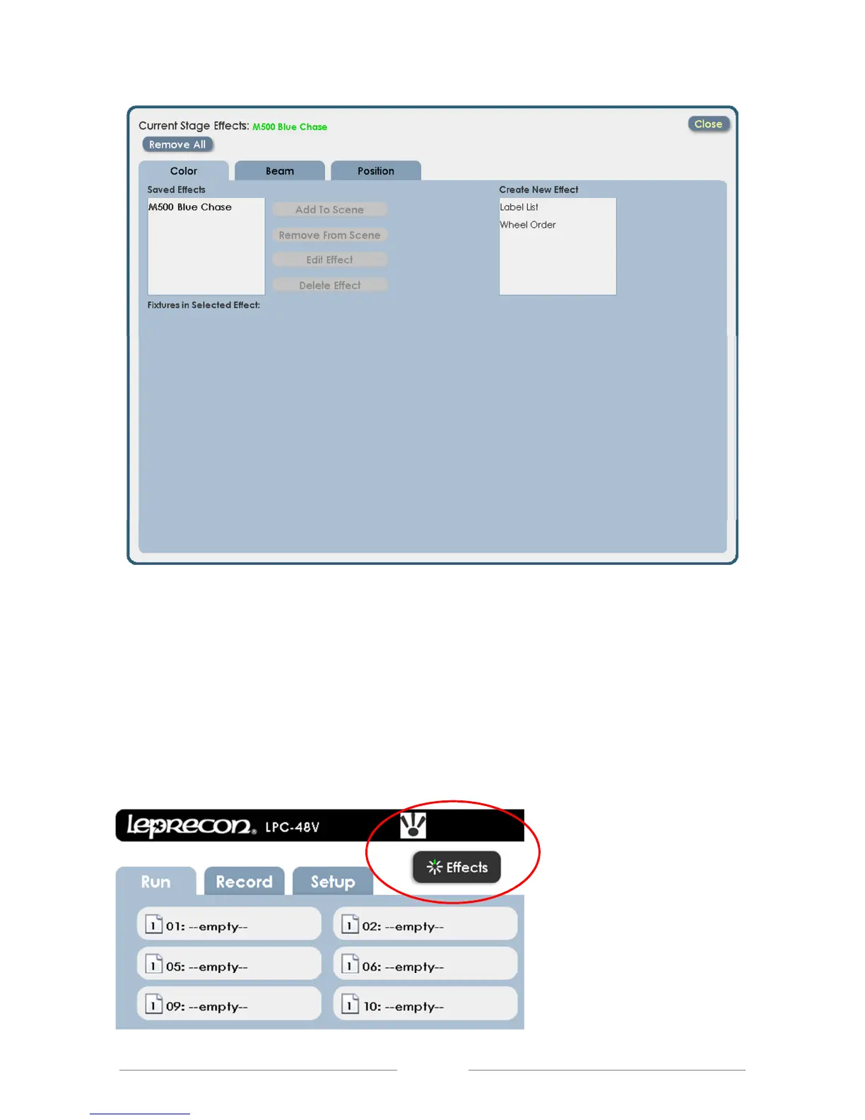 Now the new effect is in the list of Saved Effects, and is still currently running on