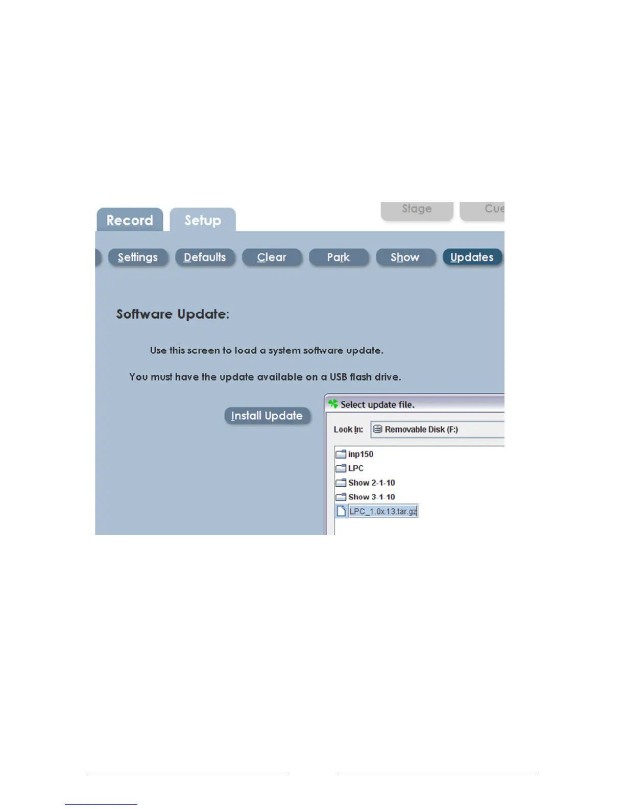 Software updates are installed in LPC in the Updates screen, (See figure 17).