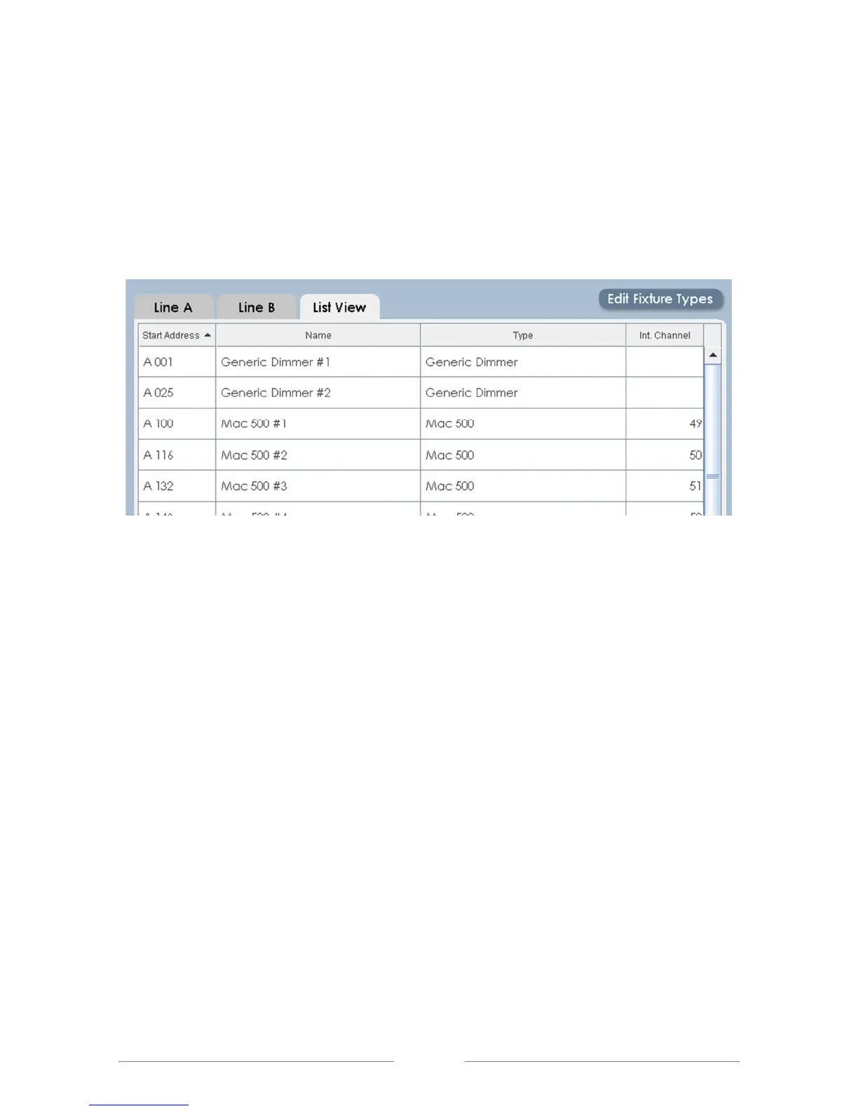 a list of all fixtures in the system. Clicking on the List View tab shows something