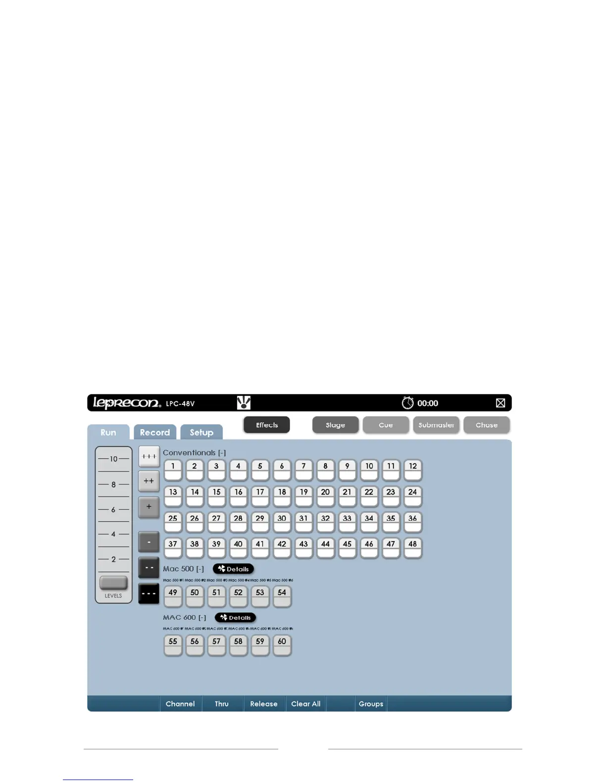 fixtures are available for use. Fixtures can be controlled in Run mode without