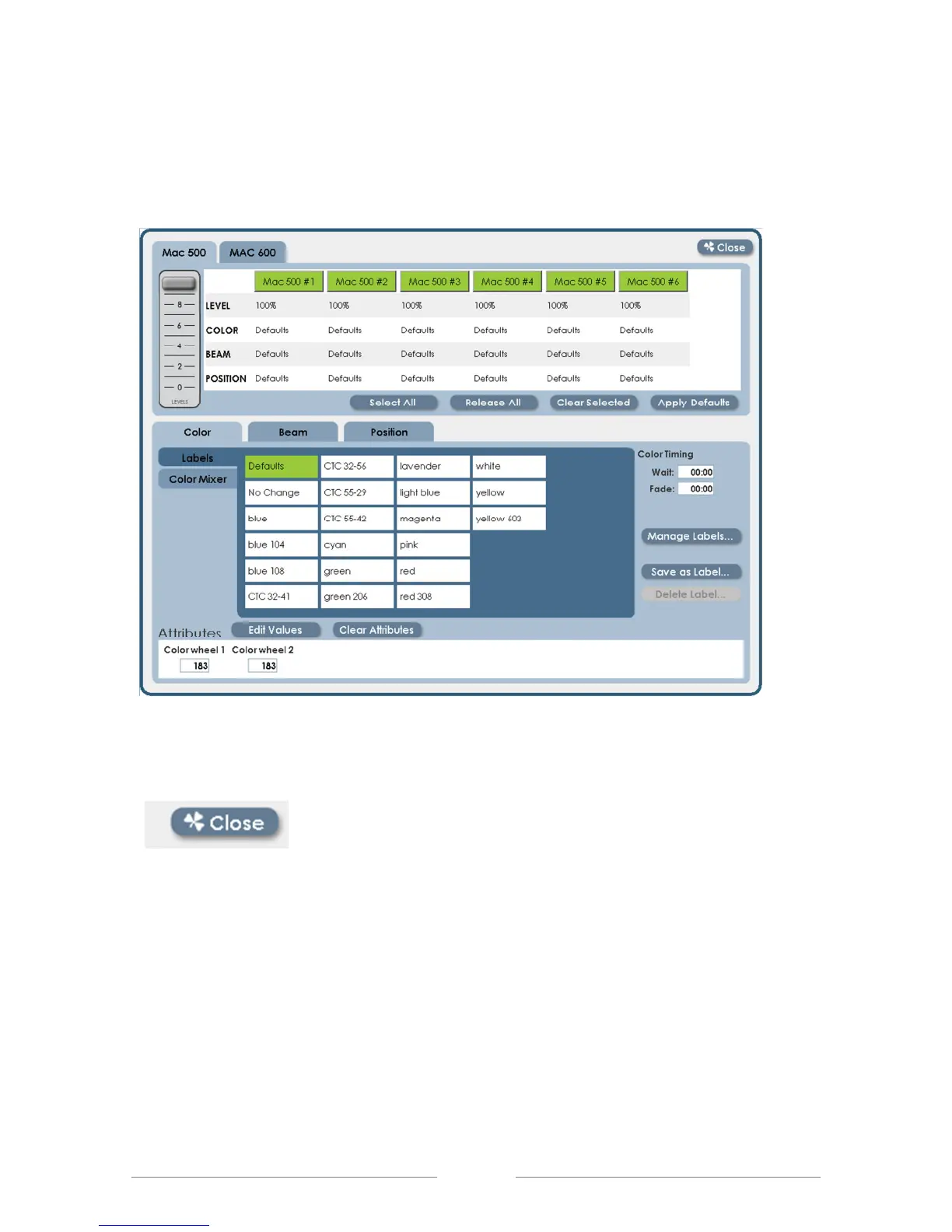‘Close’ button in the upper right corner, or press the ‘shamrock’ key again.