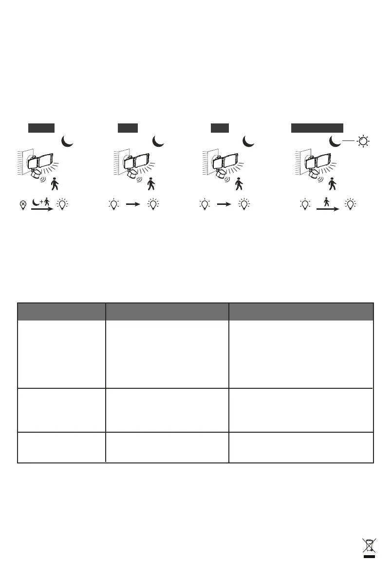 From night to dawn, the light will stay on low. When motion is detected, it will switch to highlight mode.