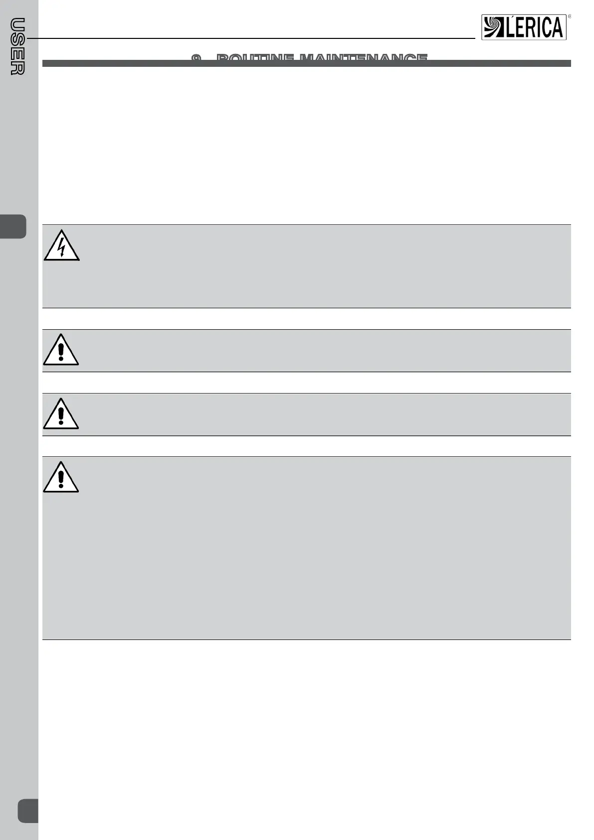 Tocarryoutcleaningandroutinemaintenanceoperationssafely,followtheregulationsprovidedbelow: