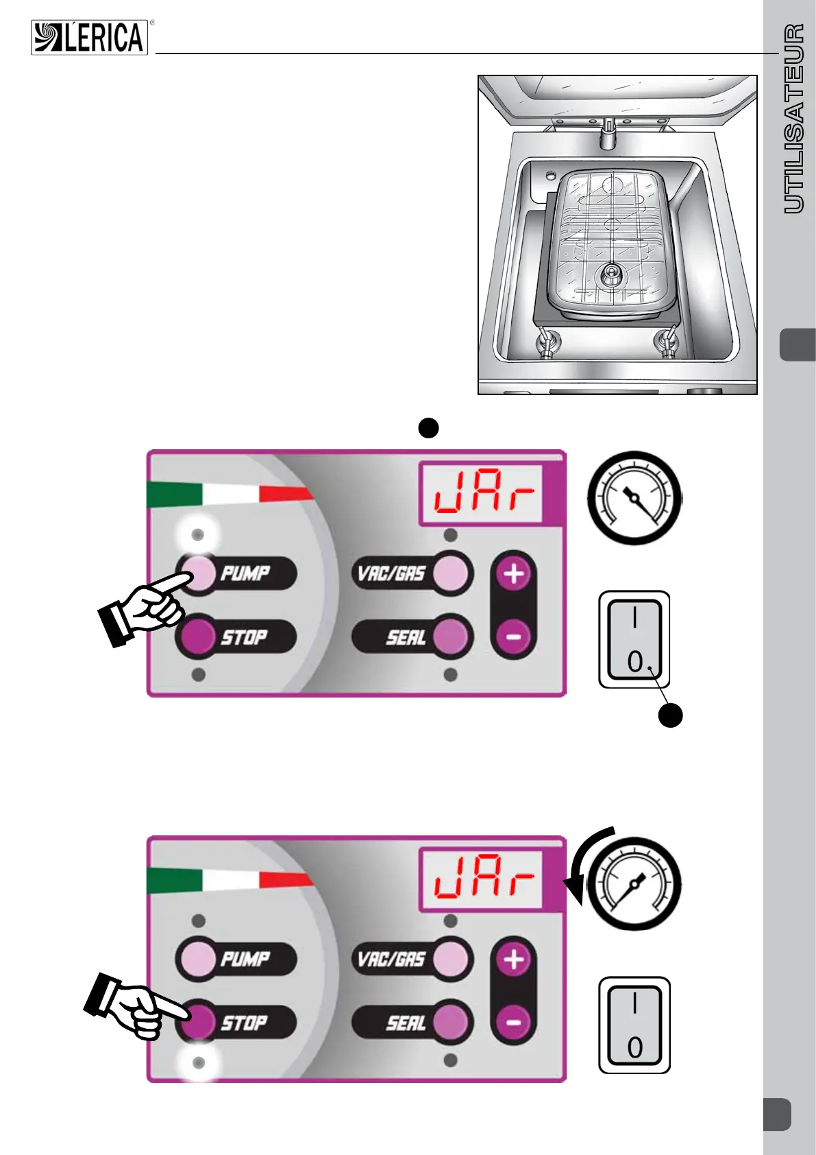 Interromprelecycleauniveauduvidesouhaité,indiquéparlevacuomètre,enappuyantsurleboutonSTOP.