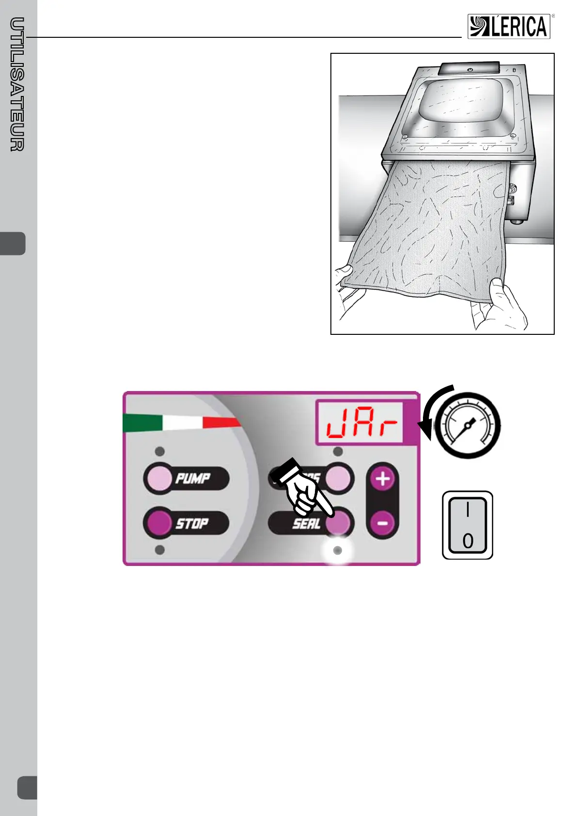 ScellerlesachetauniveaudevidesouahitéindiquéparlevacuomètreenappuyantsurleboutonSEAL.