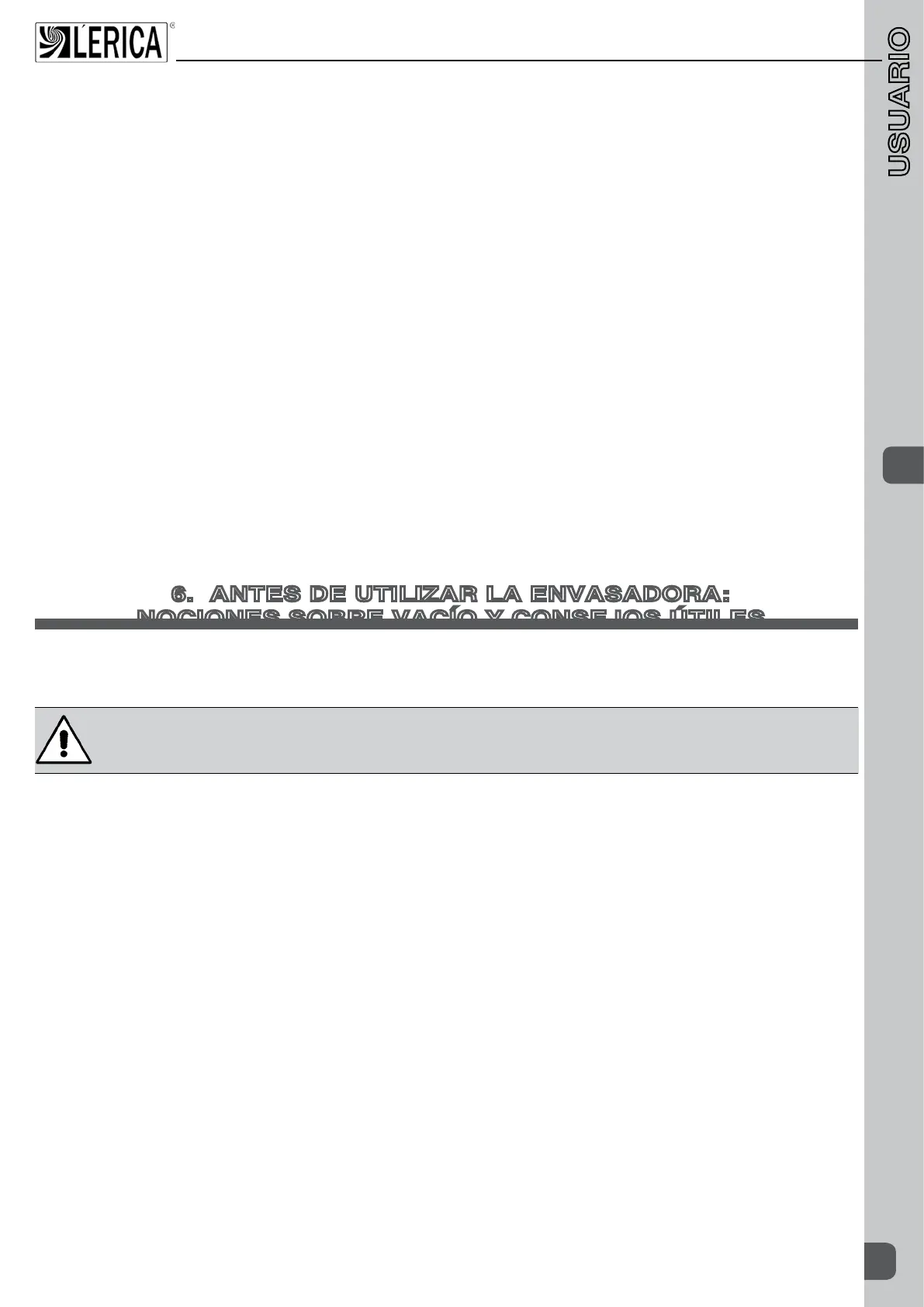 6. ANTES DE UTILIZAR LA ENVASADORA: