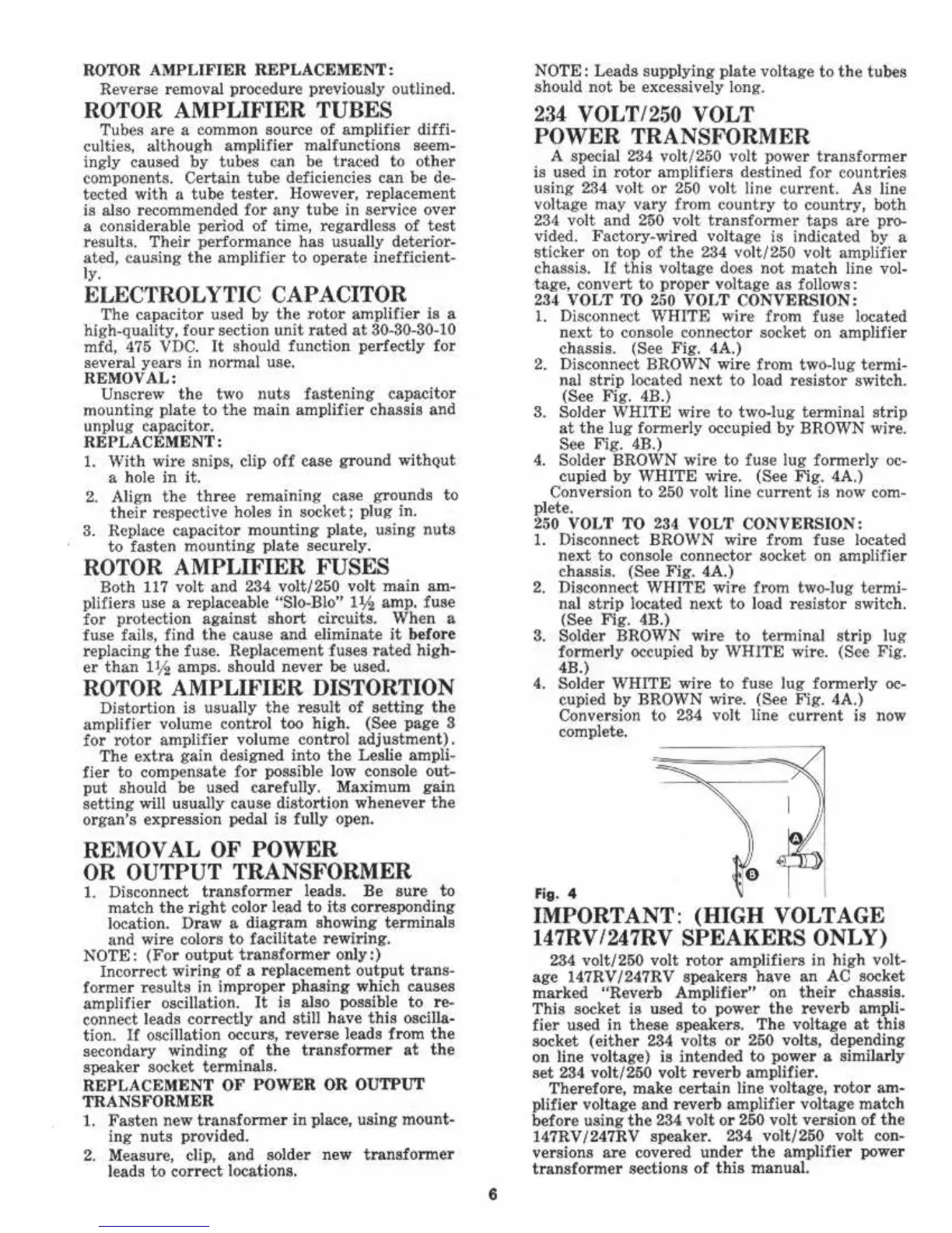 Leslie 145 - Rotor Amplifier Tubes; Electrolytic Capacitor; Rotor Amplifier Fuses; Rotor Amplifier Distortion