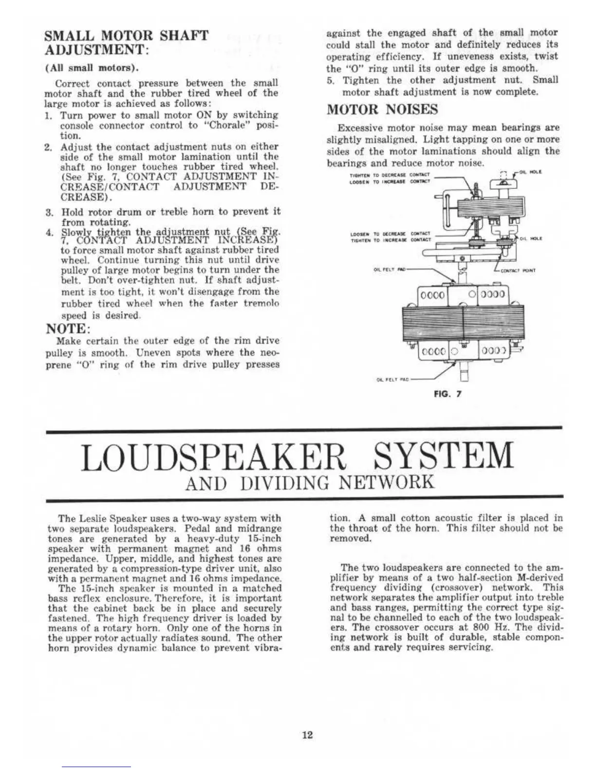 Leslie 145 - Loudspeaker System and Dividing Network; Small Motor Shaft Adjustment; Motor Noises