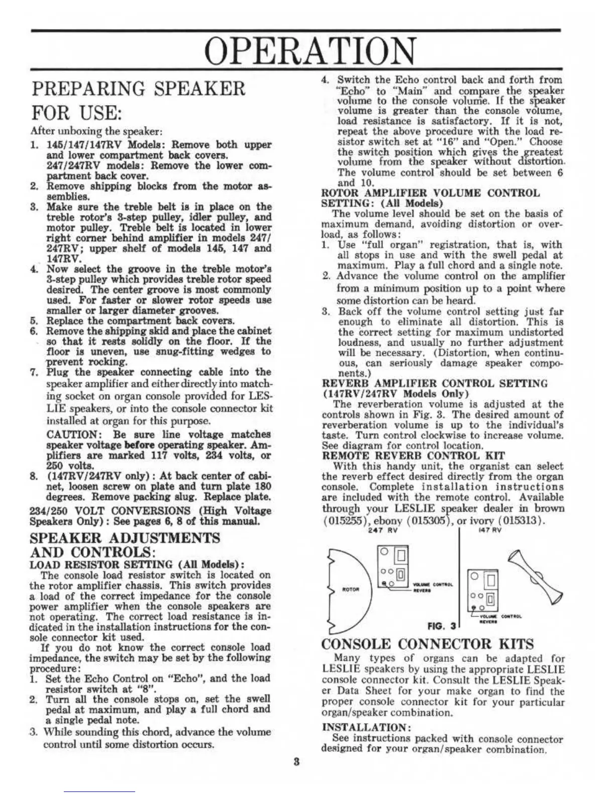 Leslie 145 - Operation and Setup Guide; Preparing Speaker for Use; Speaker Adjustments and Controls