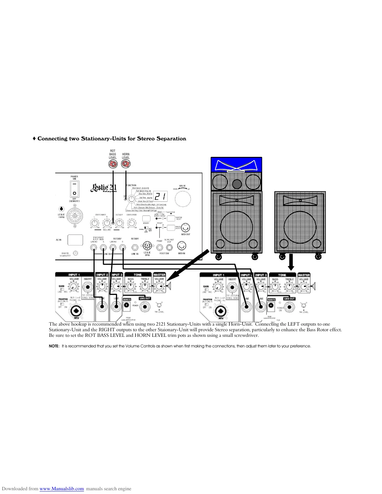 Stationary-Unit and the RIGHT outputs to the other Staionary-Unit will provide Stereo separation, particularly to enhance the Bass Rotor effect.