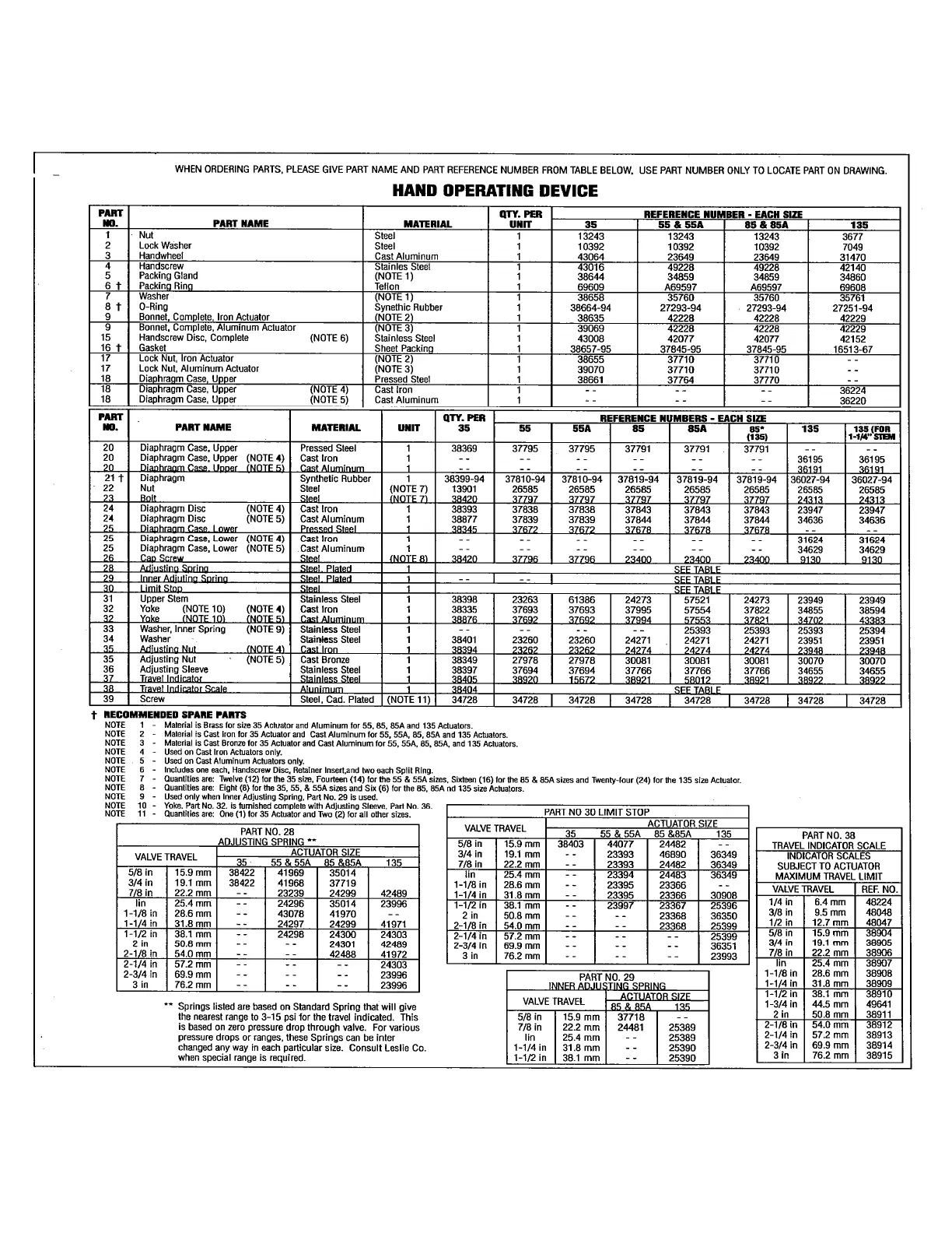 DIRECT ACTING PARTS LIST