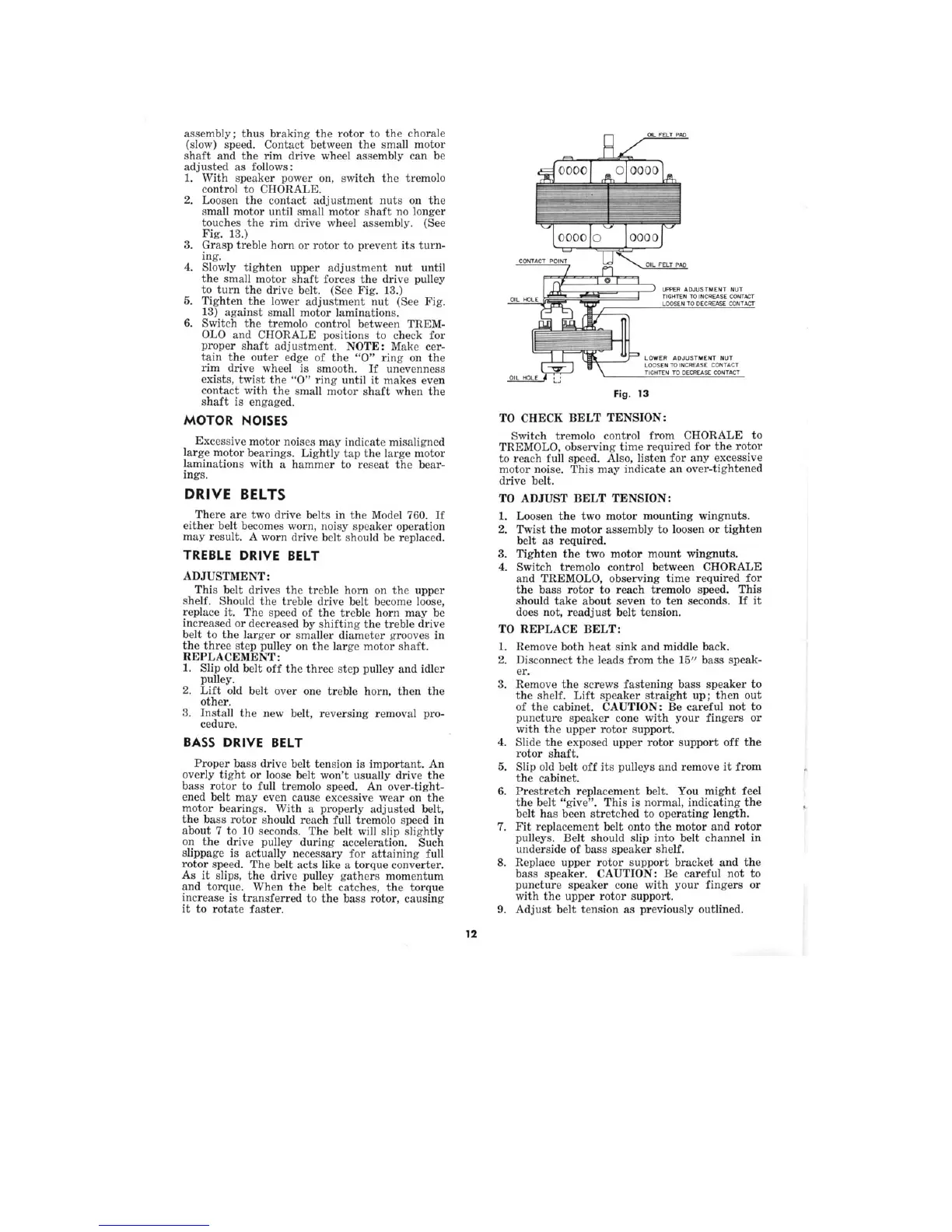 Leslie 760 - Motor Noises; Drive Belts; Treble Drive Belt; Bass Drive Belt