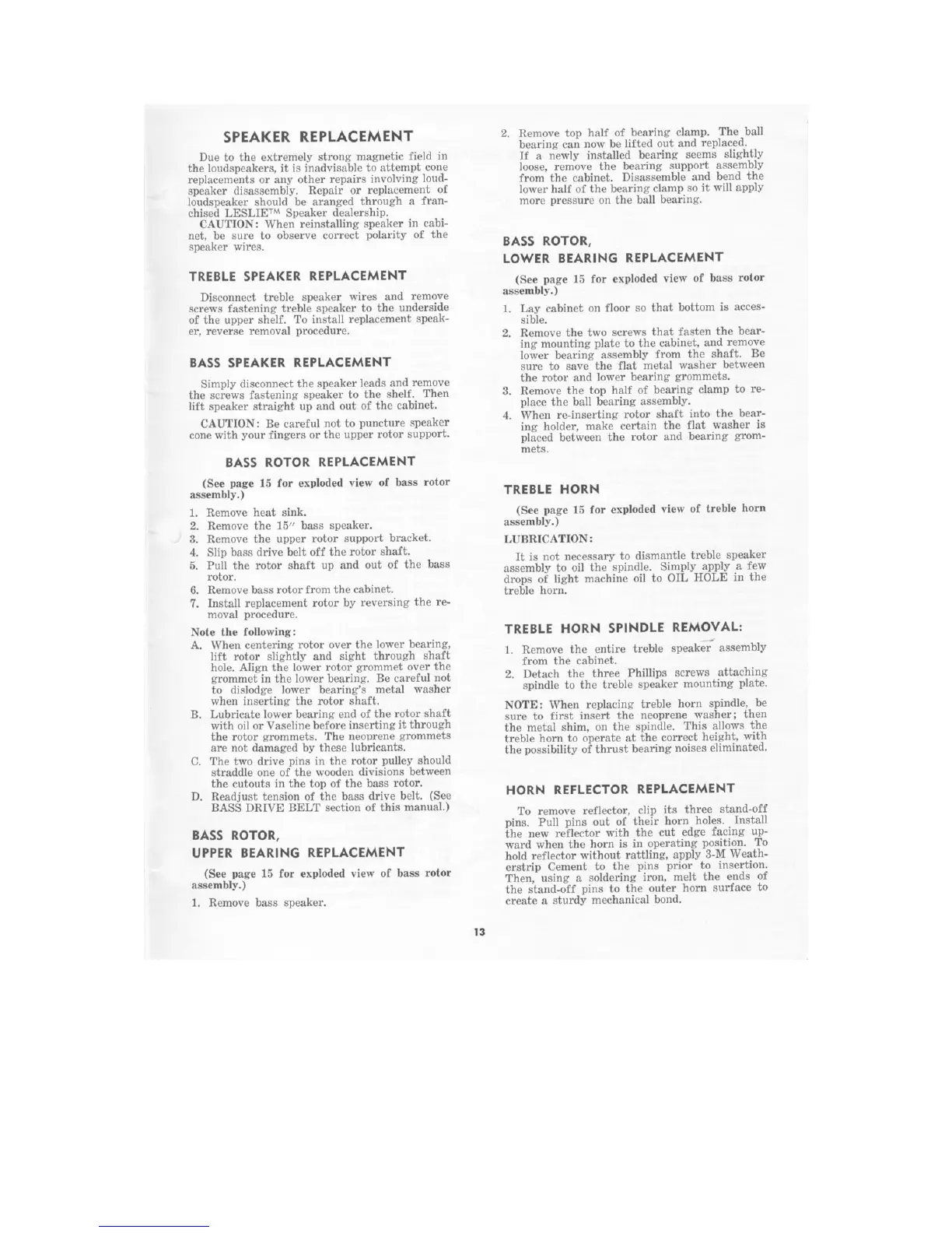 Leslie 760 - Speaker Replacement; Treble Speaker Replacement; Bass Speaker Replacement; Rotor Replacement