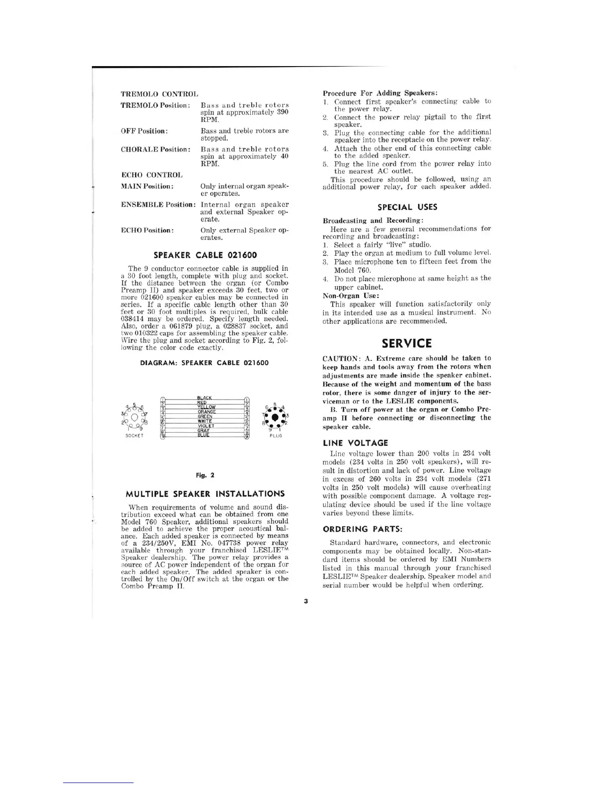 Leslie 760 - Tremolo Control; Echo Control; Speaker Cable 021600; Multiple Speaker Installations