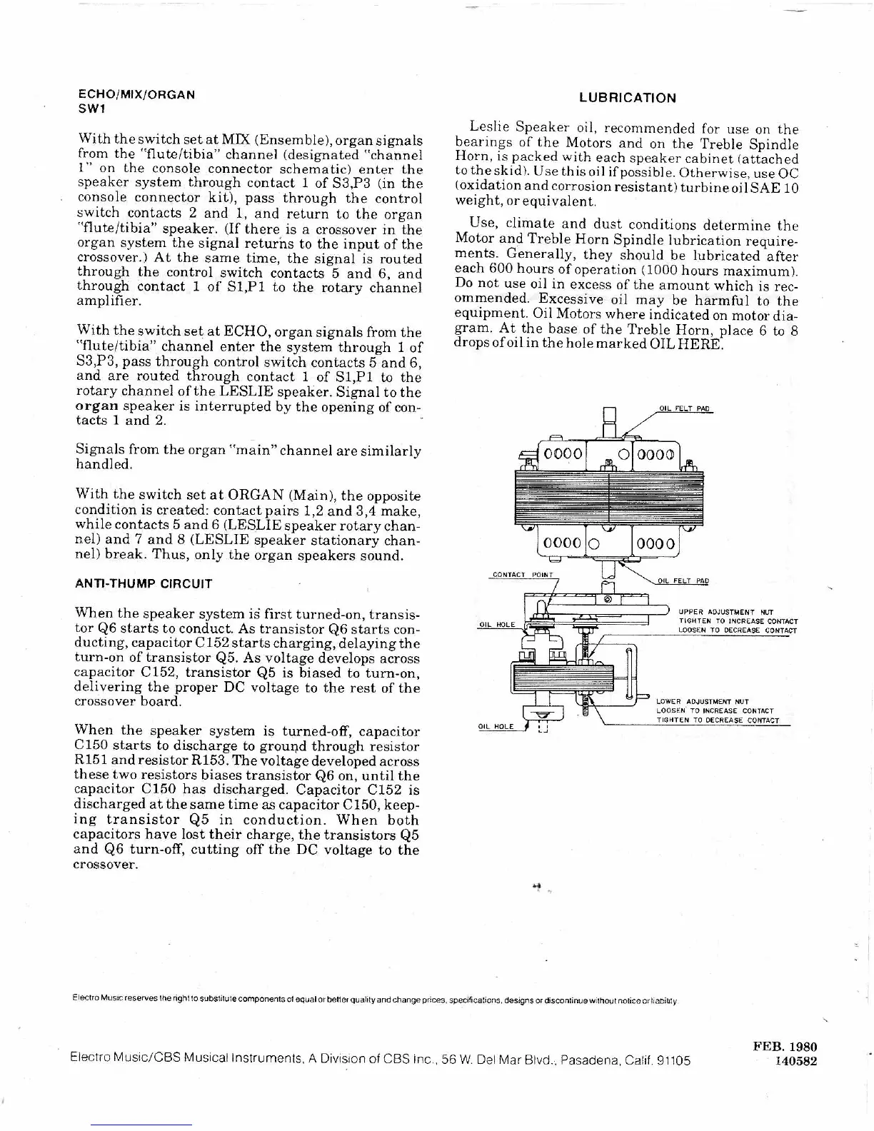 Leslie 815 - Switch Functions and Lubrication; Anti-Thump Circuit Function