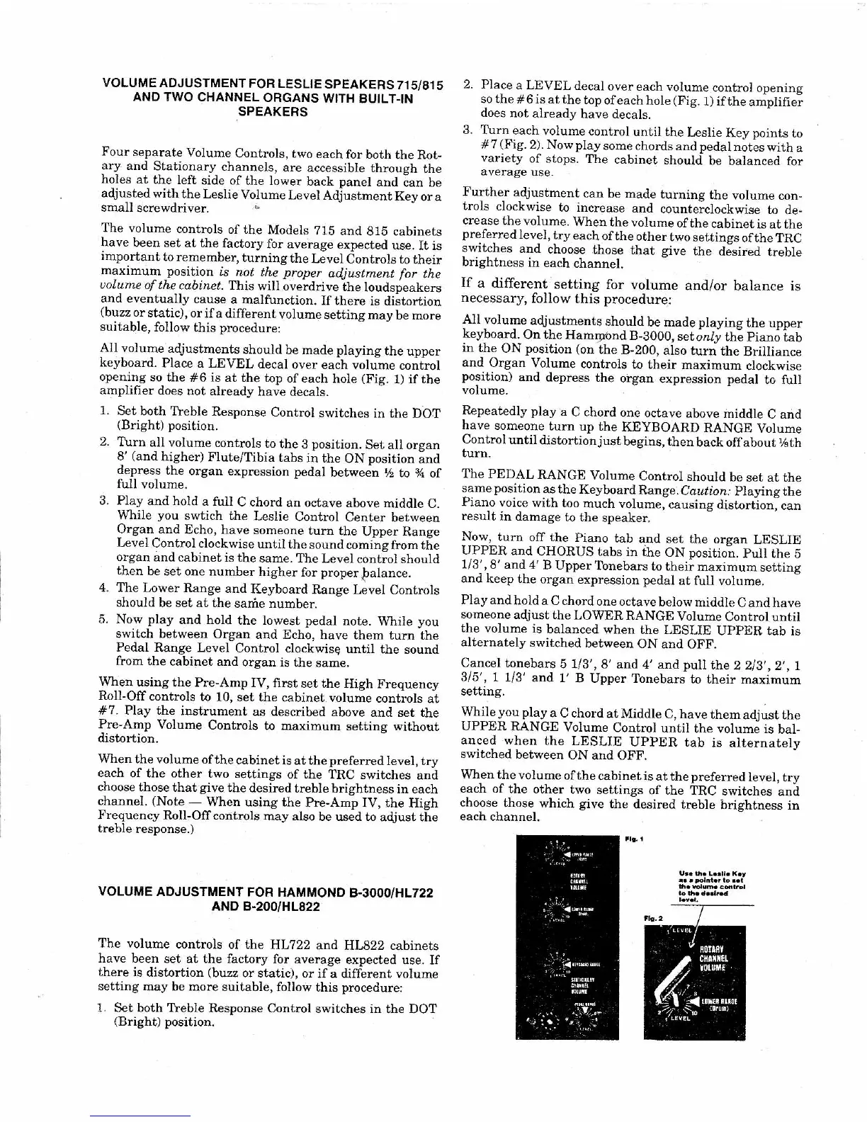 Leslie 815 - Leslie Speaker Volume Adjustment Guide; Hammond B-3000;HL722 Volume Adjustment
