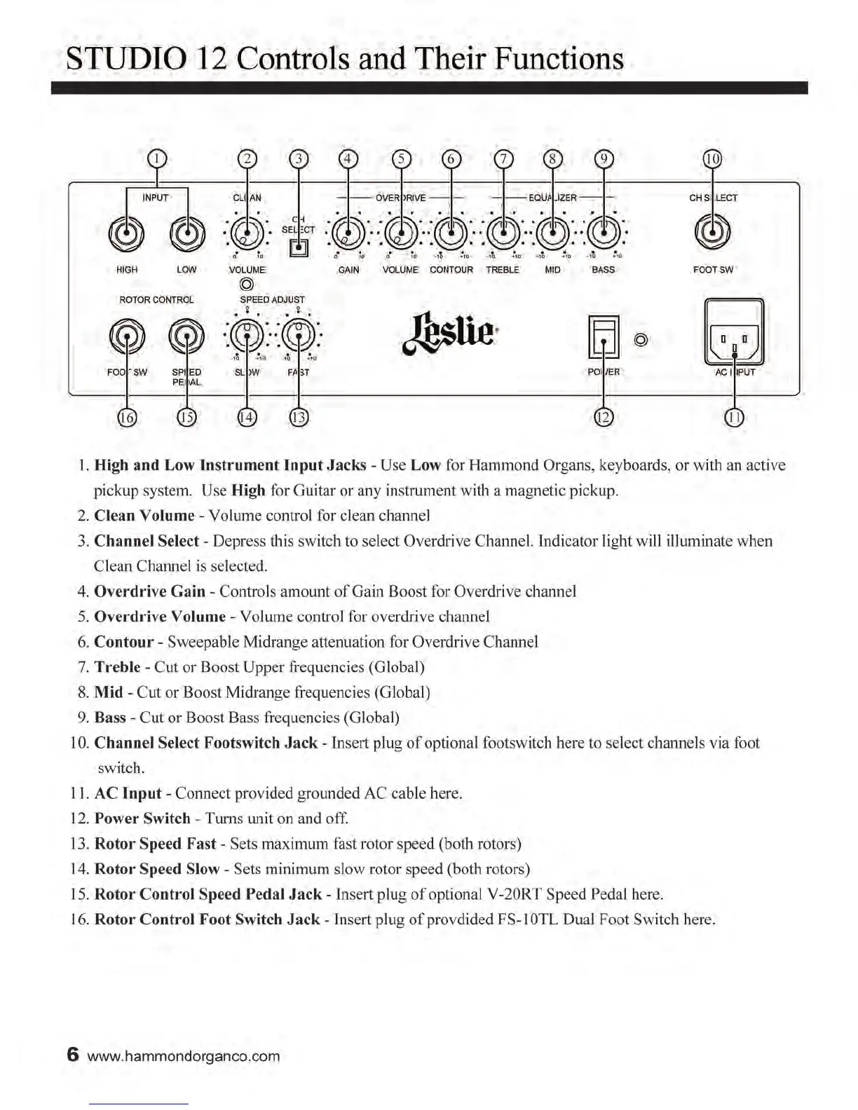 Leslie STUDIO 12 - Controls and Their Functions