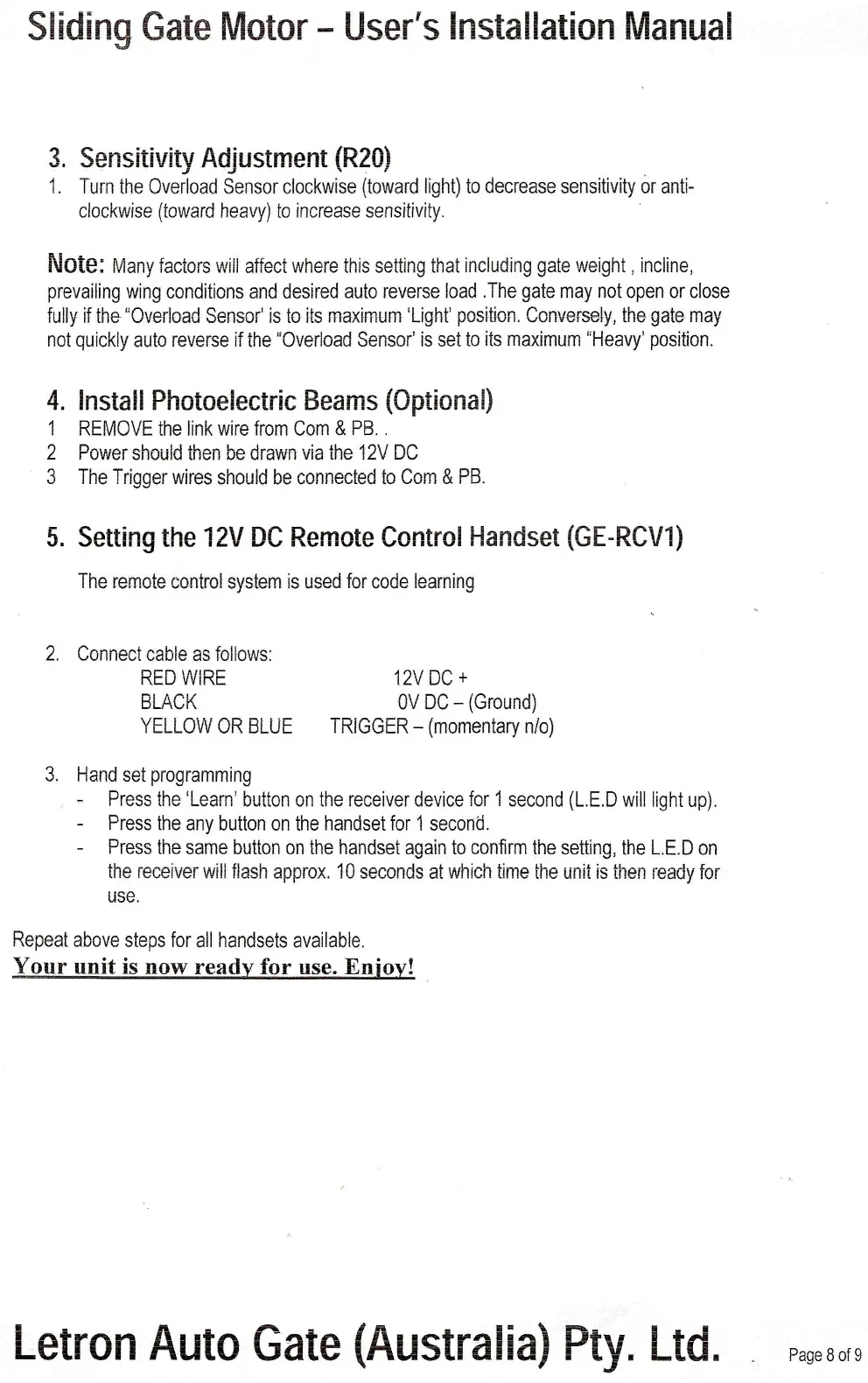 Letron Auto Gate (Australia) Pty. Ltd.