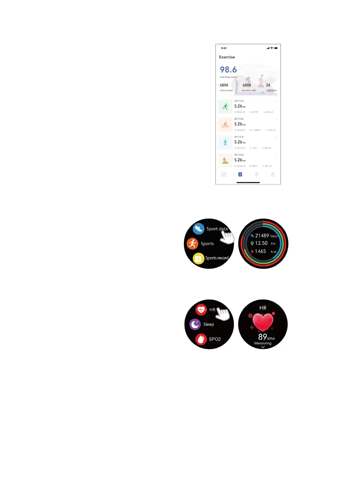 heart rate monitoring in the app ("Device" page → "Health Monitor").