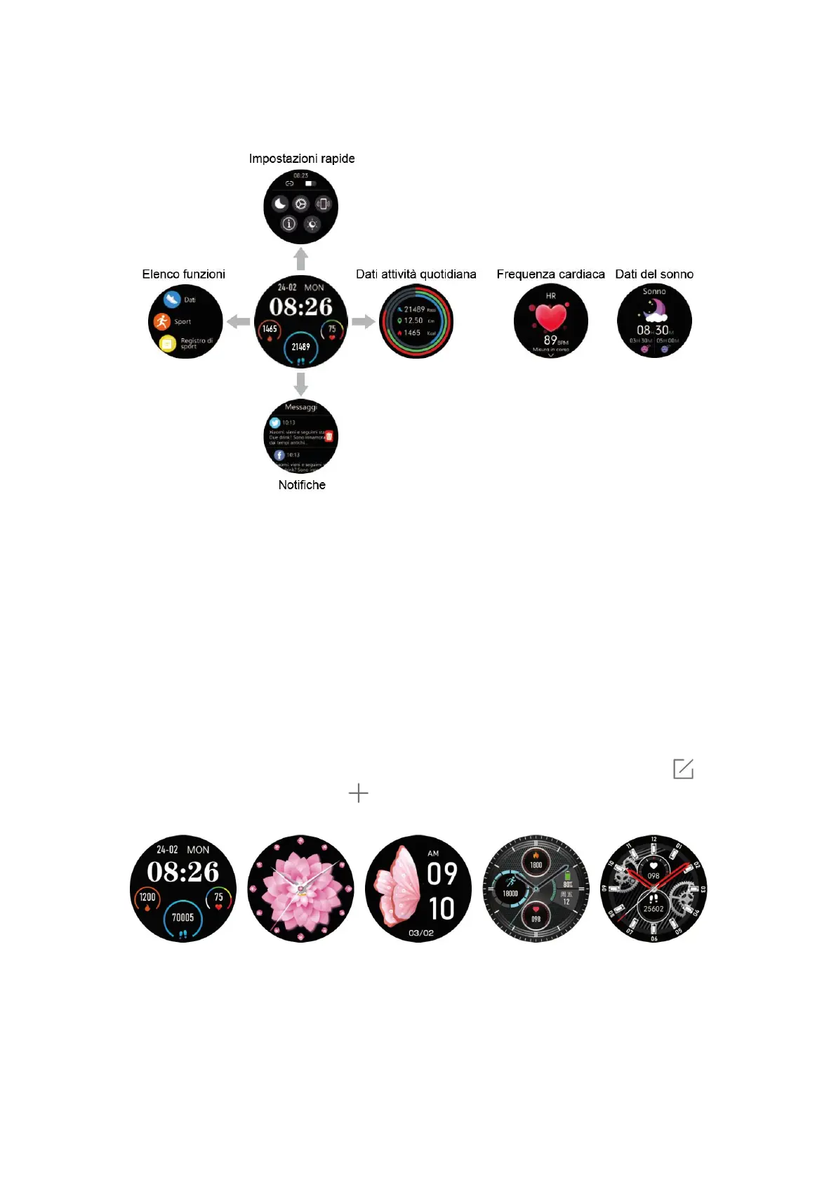 2) Scorrere verso sinistra/destra per scegliere una funzione e toccarla per confermare.