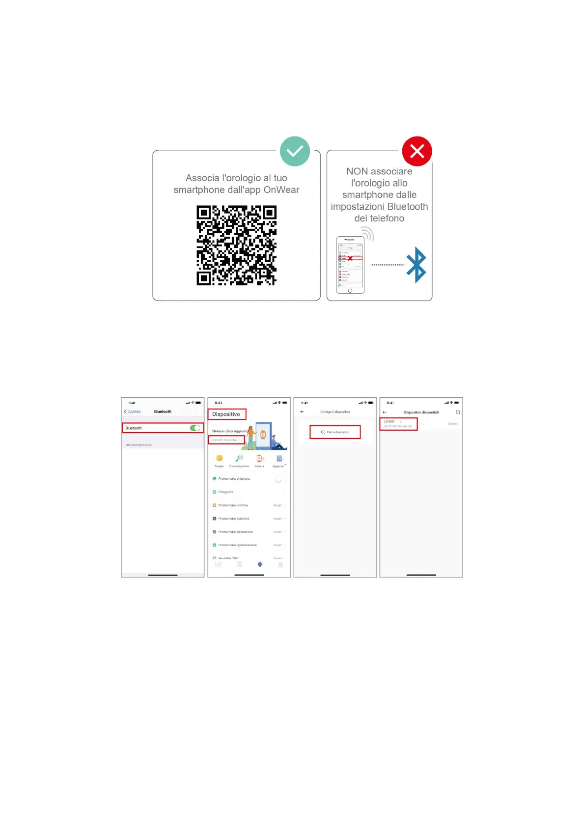 Associare l'orologio al telefono nell'app OnWear, e NON dalle impostazioni