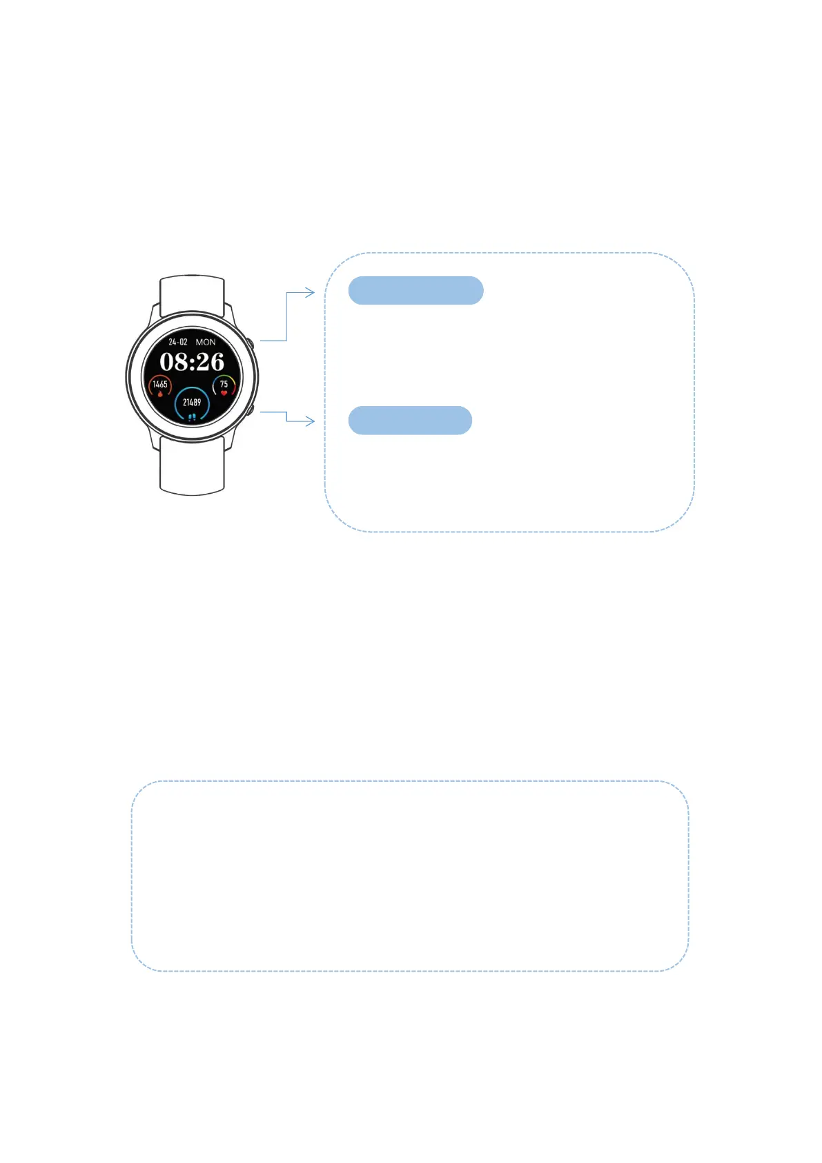 L'écran d'accueil est paramétré pour indiquer l’heure. Lorsque le montre indique l’heure:
