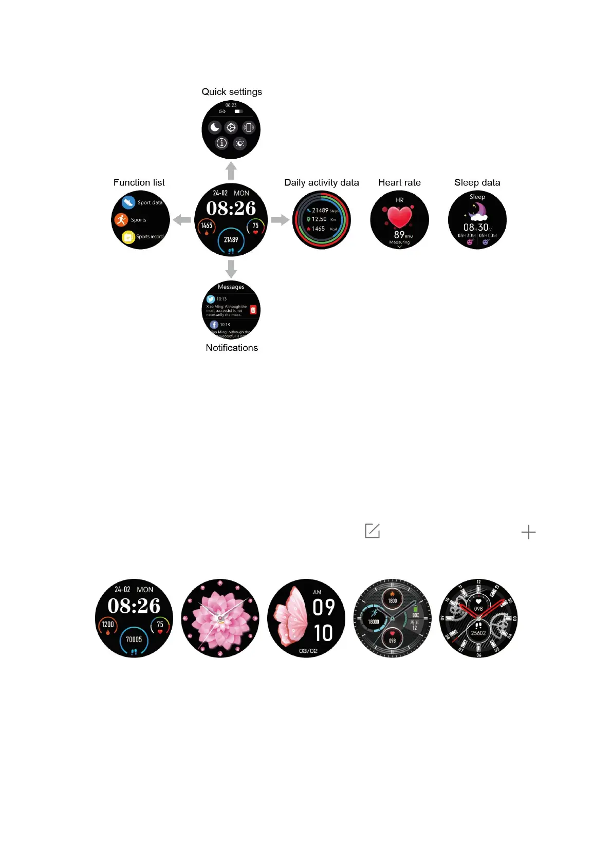 After the watch is paired with your phone, the home screen will display the time and date.