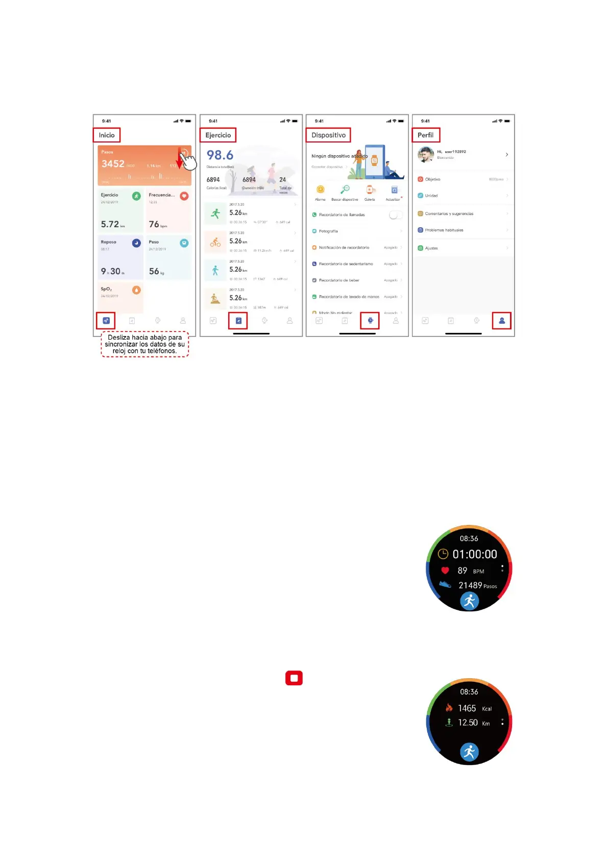 El reloj realiza el seguimiento de sus datos de ejercicio en 8 modos de deporte.