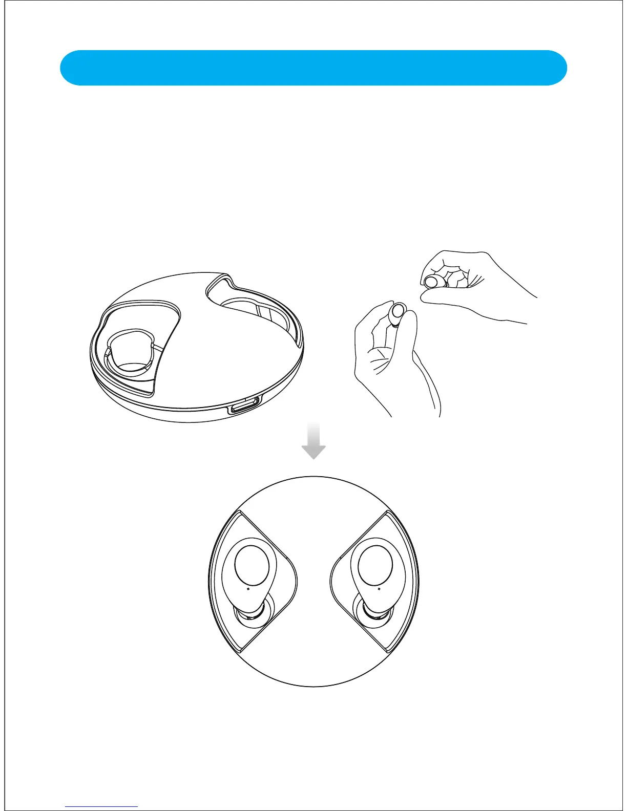 1) Align the charging contacts on the right earbud with the charging