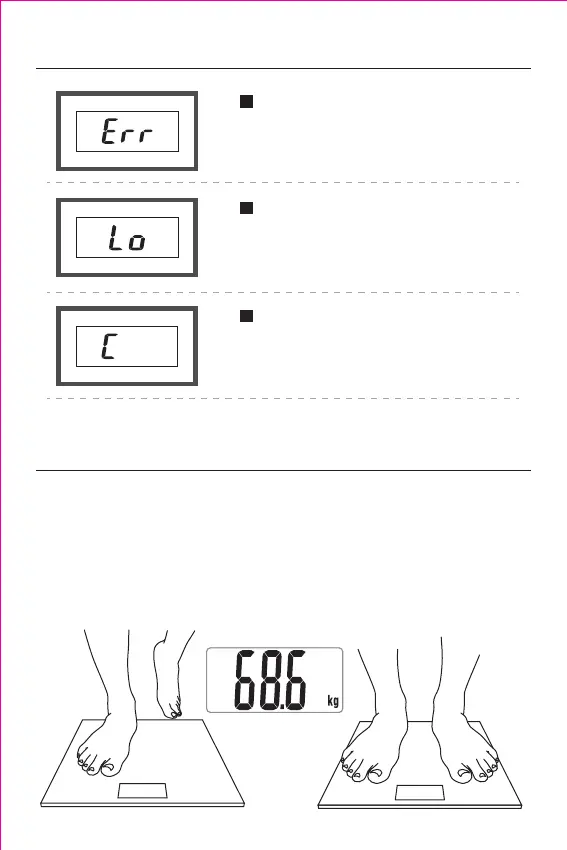 1) For best results, place the scale on a hard, at surfaces. Avoid carpet or soft