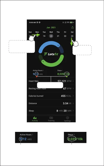 Letsfit ID205L - App Interface Overview; Activity Screen Details