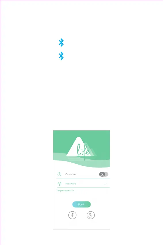 The Bluetooth symbol " " is flashing on the scale LCD screen.