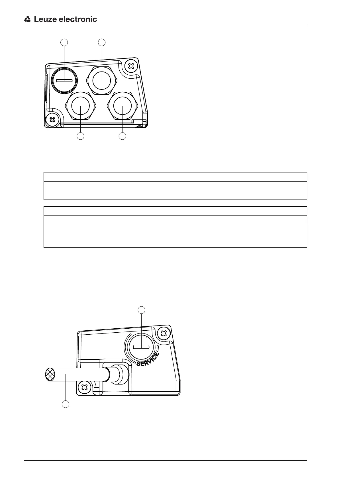 1 SERVICE: Mini-B USB socket (behind protective cap)