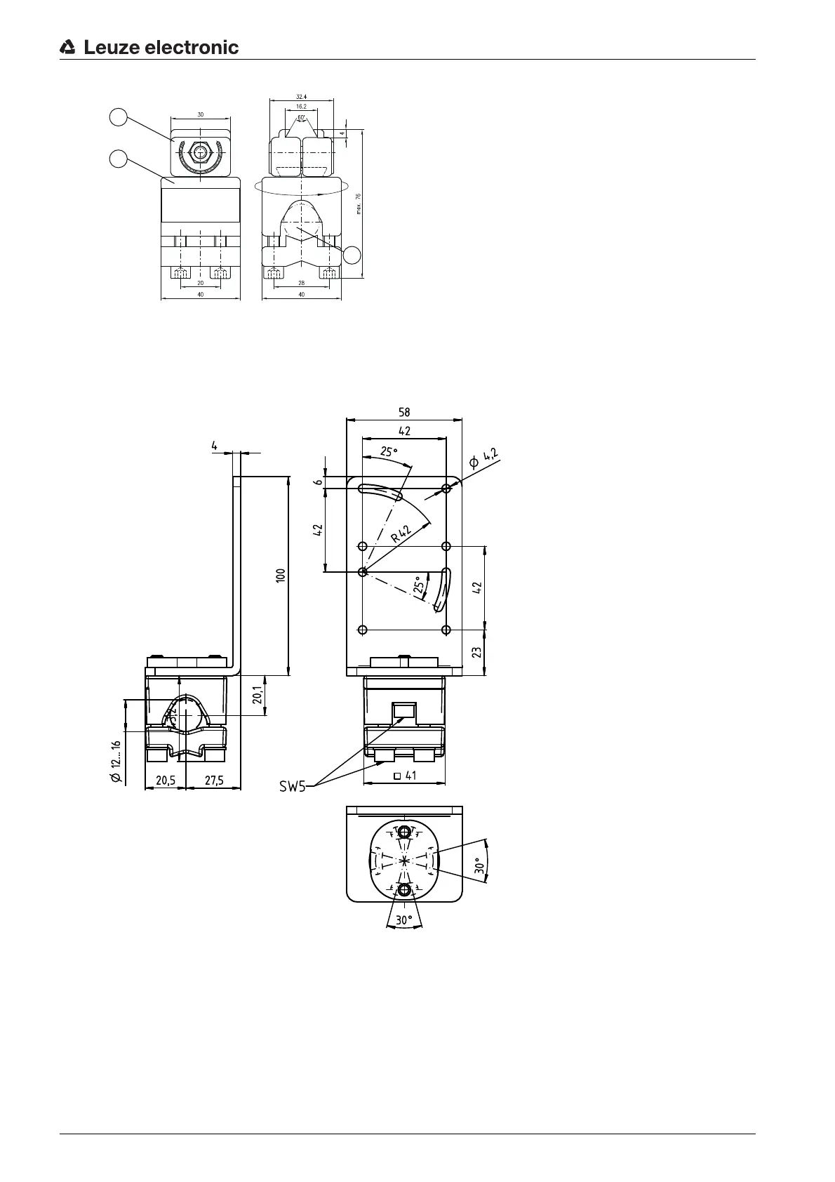 Figure 13.11: Dimensioned drawing BT 56 mounting device