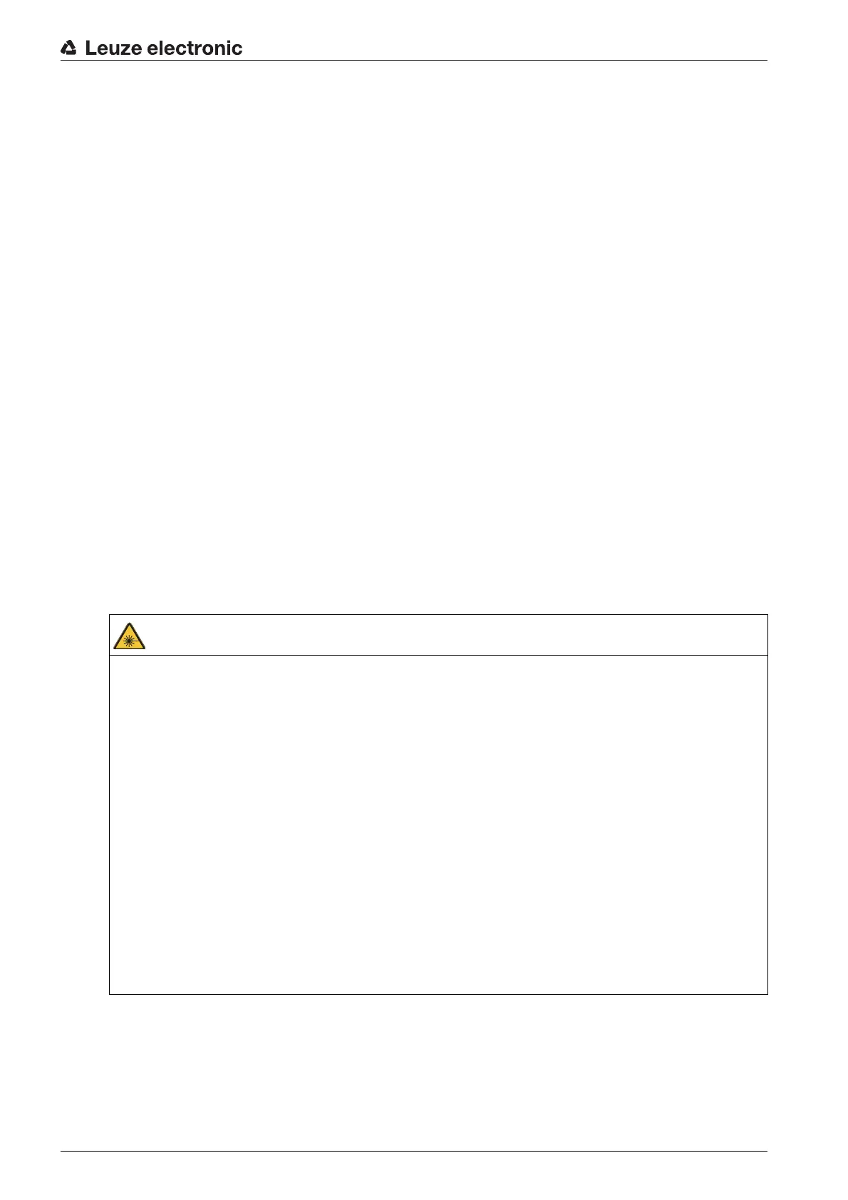 When mounting and aligning the device, avoid reflections of the laser beam off reflective surfaces!