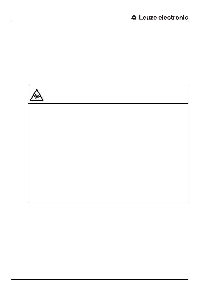 When mounting and aligning the device, avoid reflections of the laser beam off reflec-