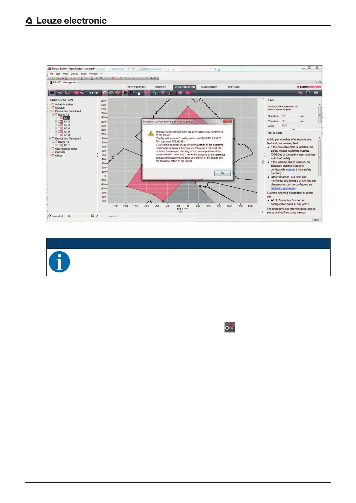 The safety configuration has only been successfully transferred to the safety sensor when the confirma-