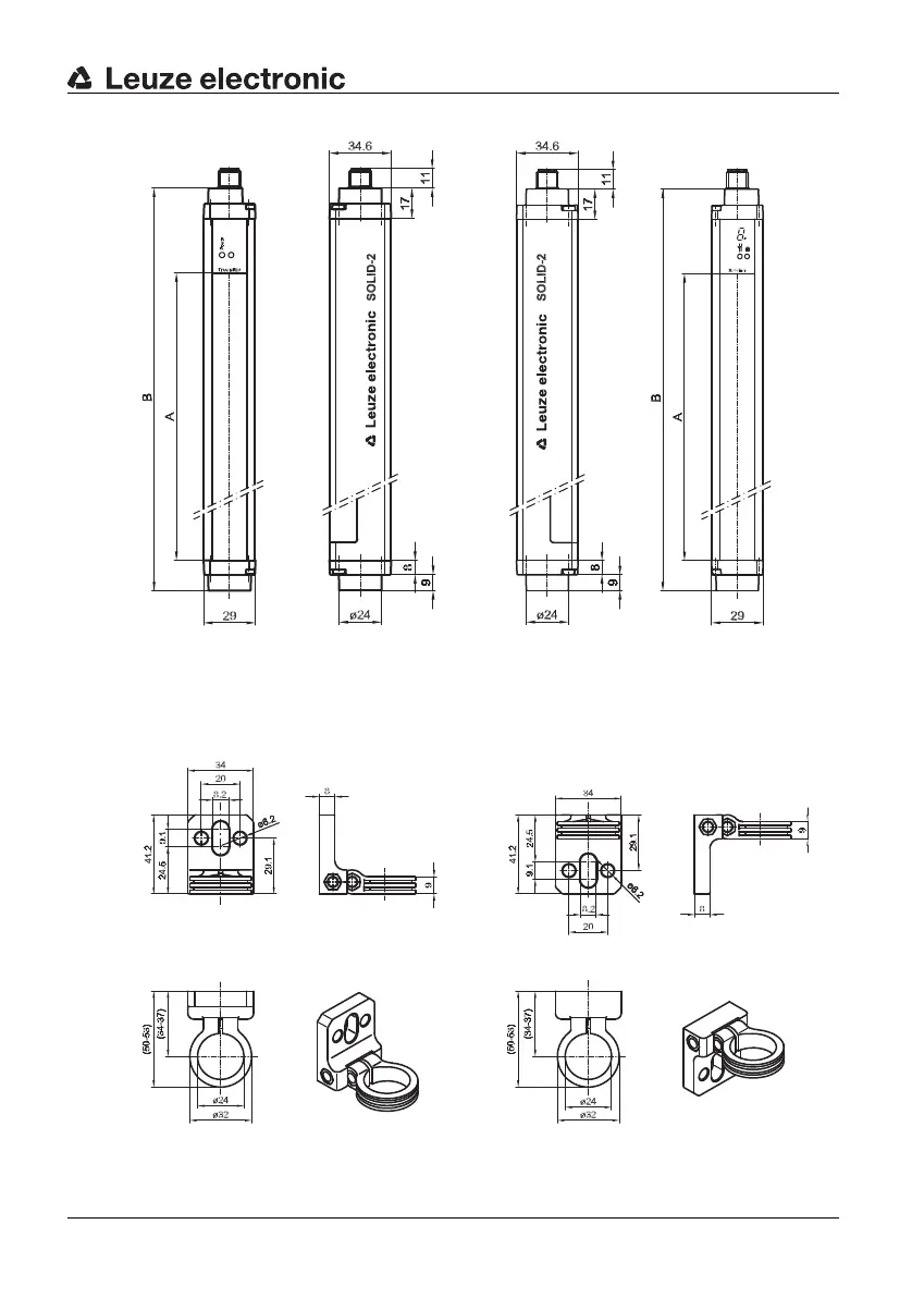 Fig. 10.2-1: Dimensions of Safety Light Curtains