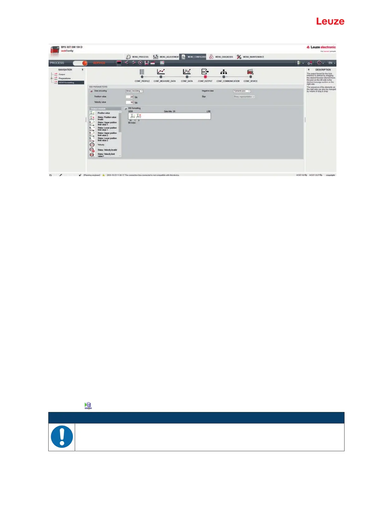 Ä Drag the symbol for the output module into the white field in the SSI formatting area and release the