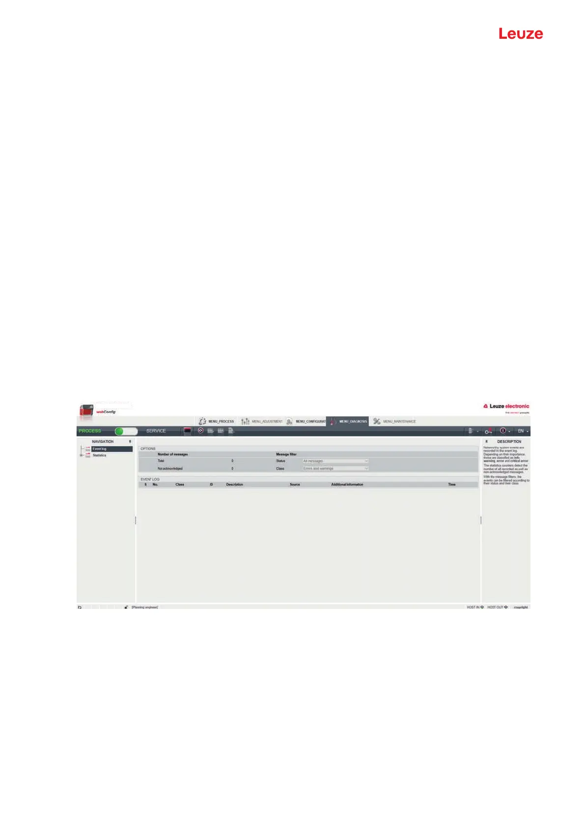 The device event log is displayed with the DIAGNOSIS function.