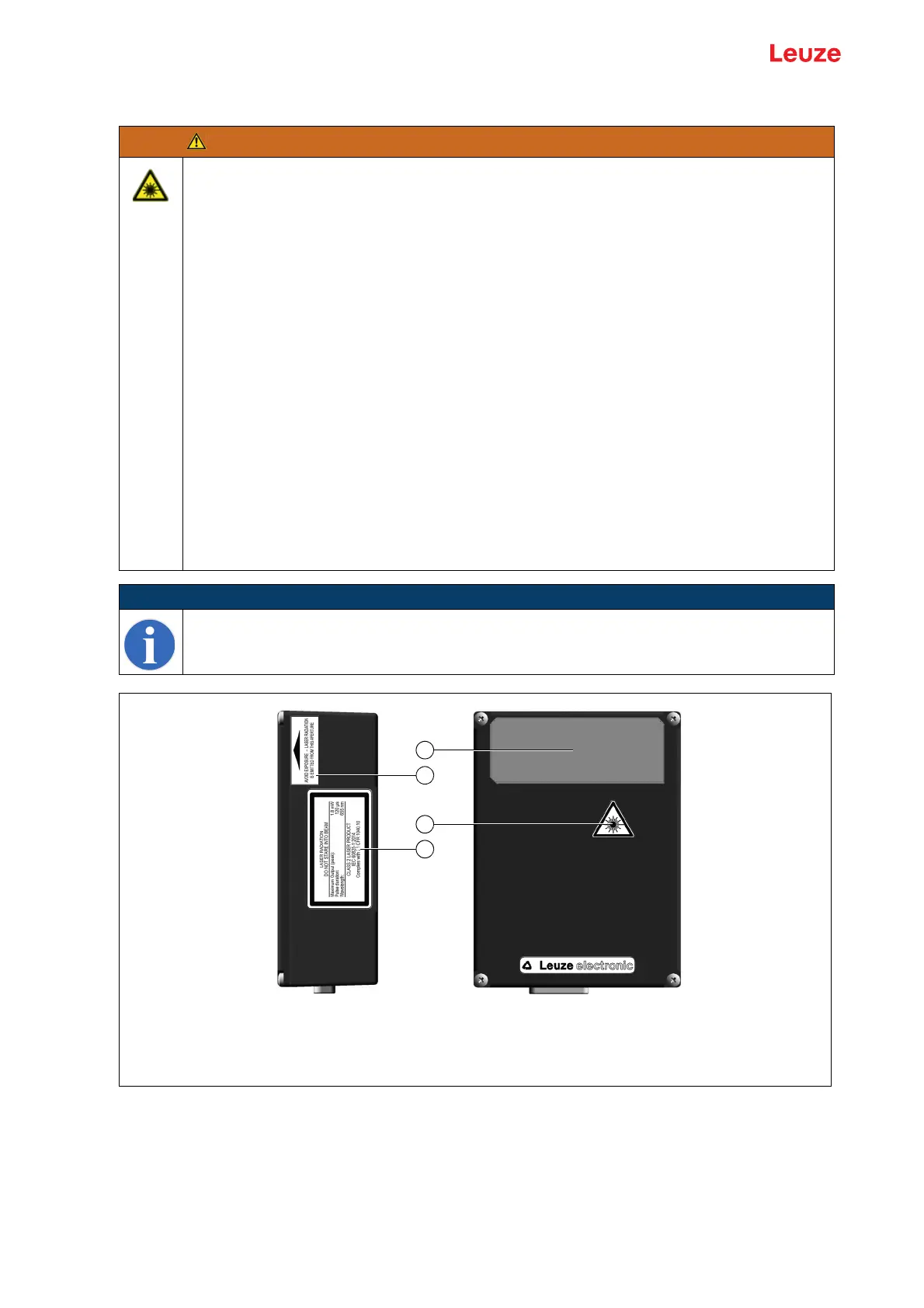 Laser information and warning signs are attached to the device (see Figure 2.1):