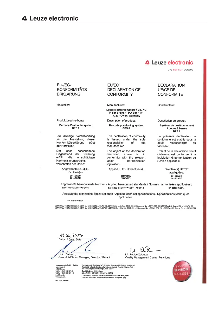 Leuze BPS 8 - Appendix: Declarations; EC Declaration of Conformity