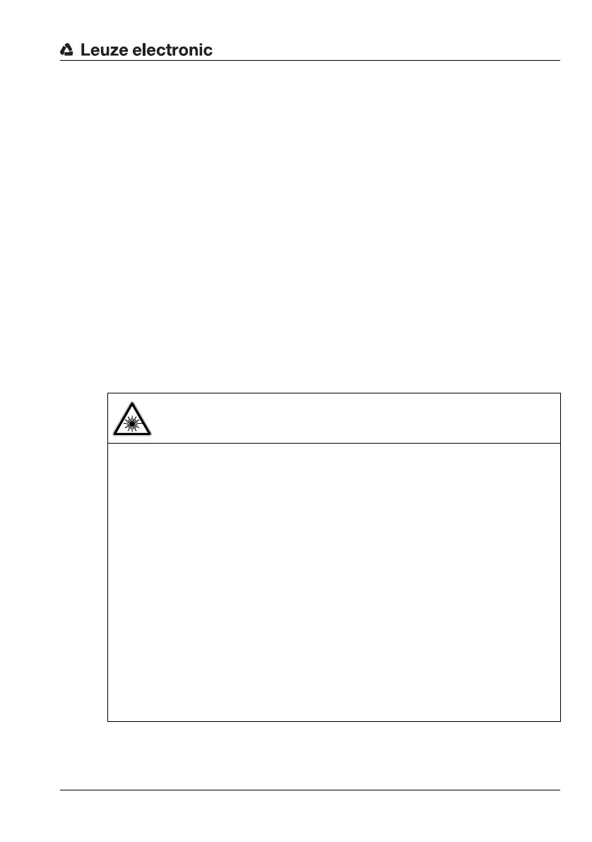 When mounting and aligning the device, avoid reflections of the laser beam off reflec-