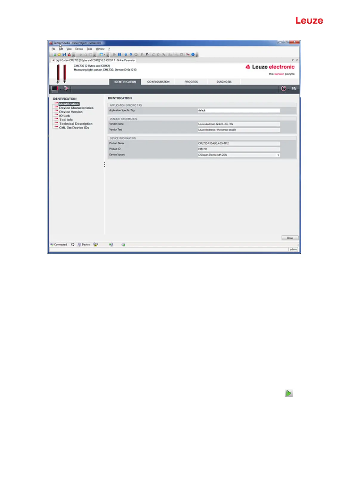 connected light curtain or read out process data.