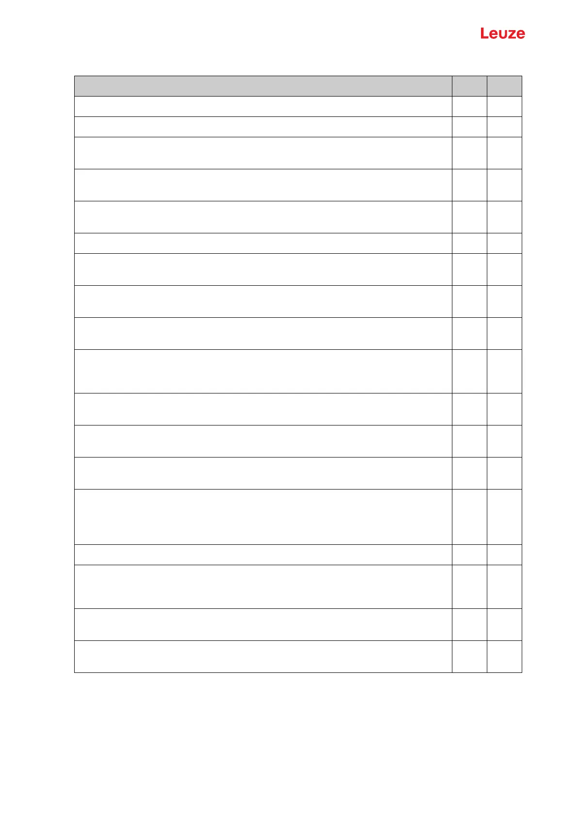Table 9.1: Checklist – initial start-up
