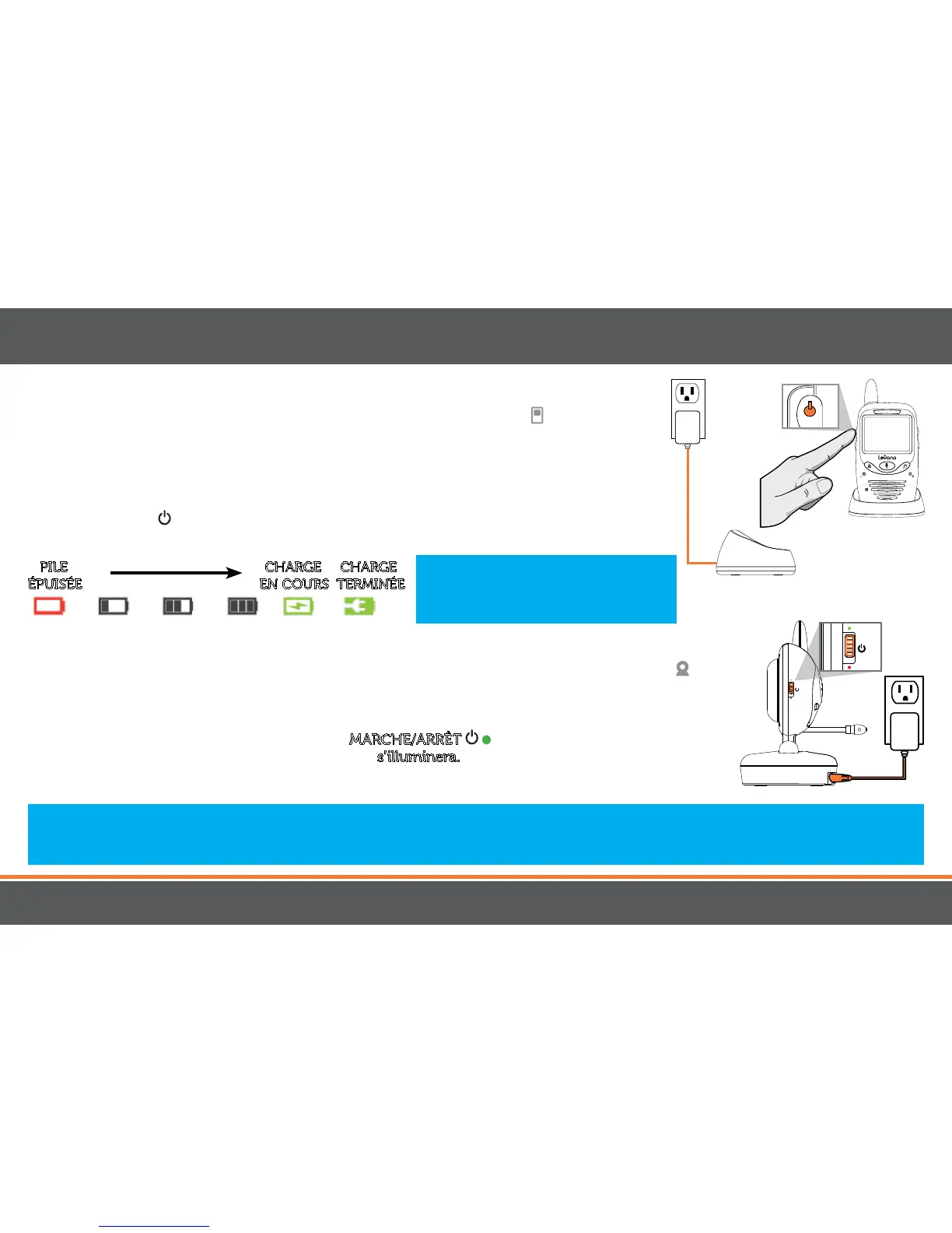 Note: Les moniteurs/caméras avec cordons d’alimentation ne doivent jamais être accrochés sur ou près du lit de bébé car il y a un