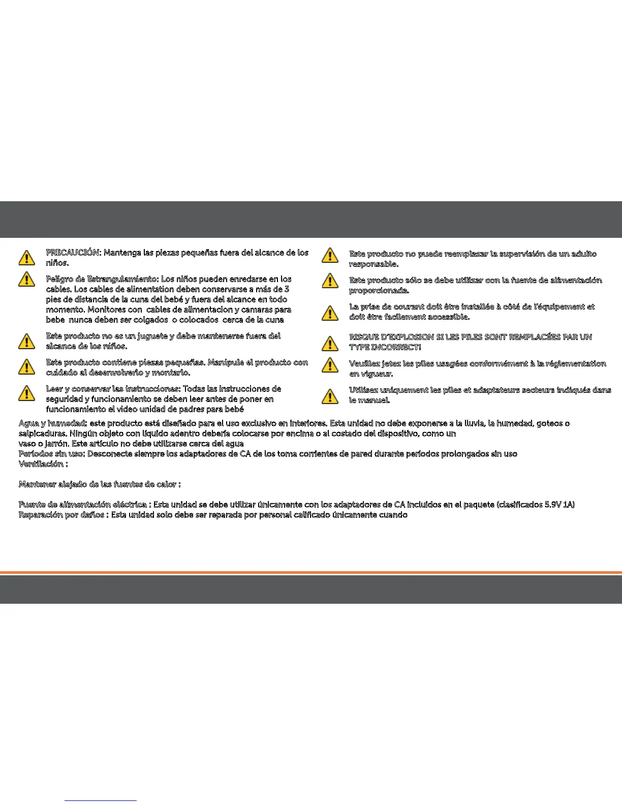Ventilación : Este unidad de padres para bebé no debería utilizarse en una cama, sofá, alfombra o superficie similar que pueda bloquear los orificios de
