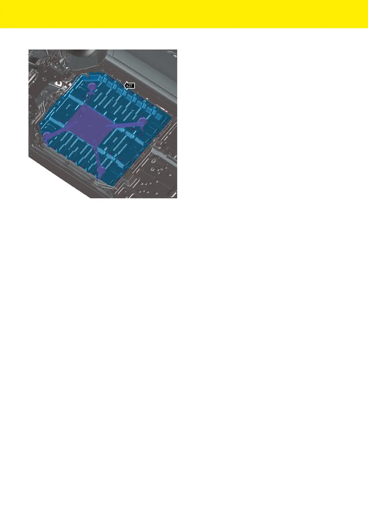 10.Remove the 27 fasteners from the battery - high voltage.