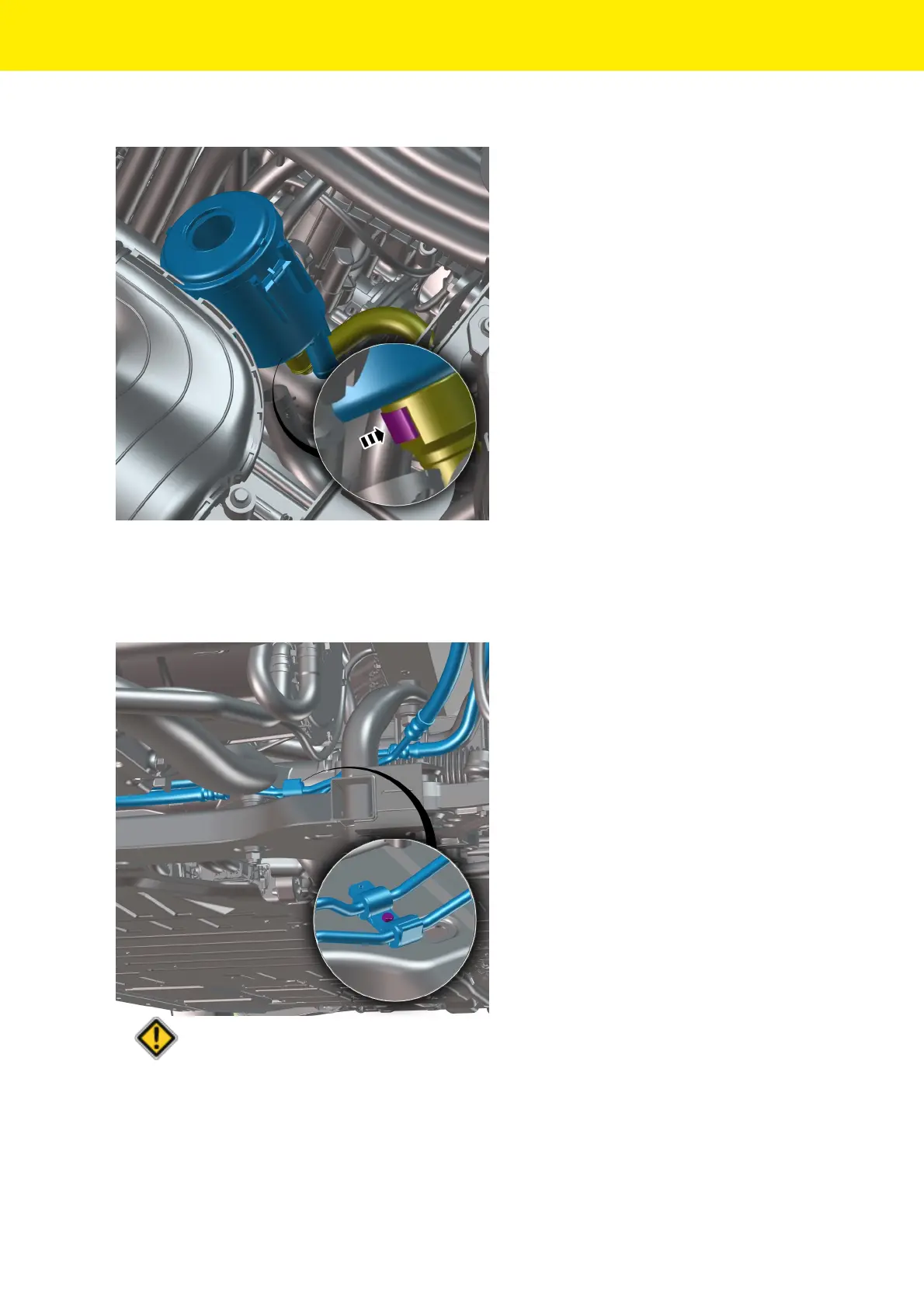 7. Remove the fastener from the hose - power steering high and low pressure assembly and